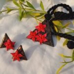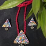 Lotus on triangle pendent and ear rings set ( 1 necklace and 2 ear rings )