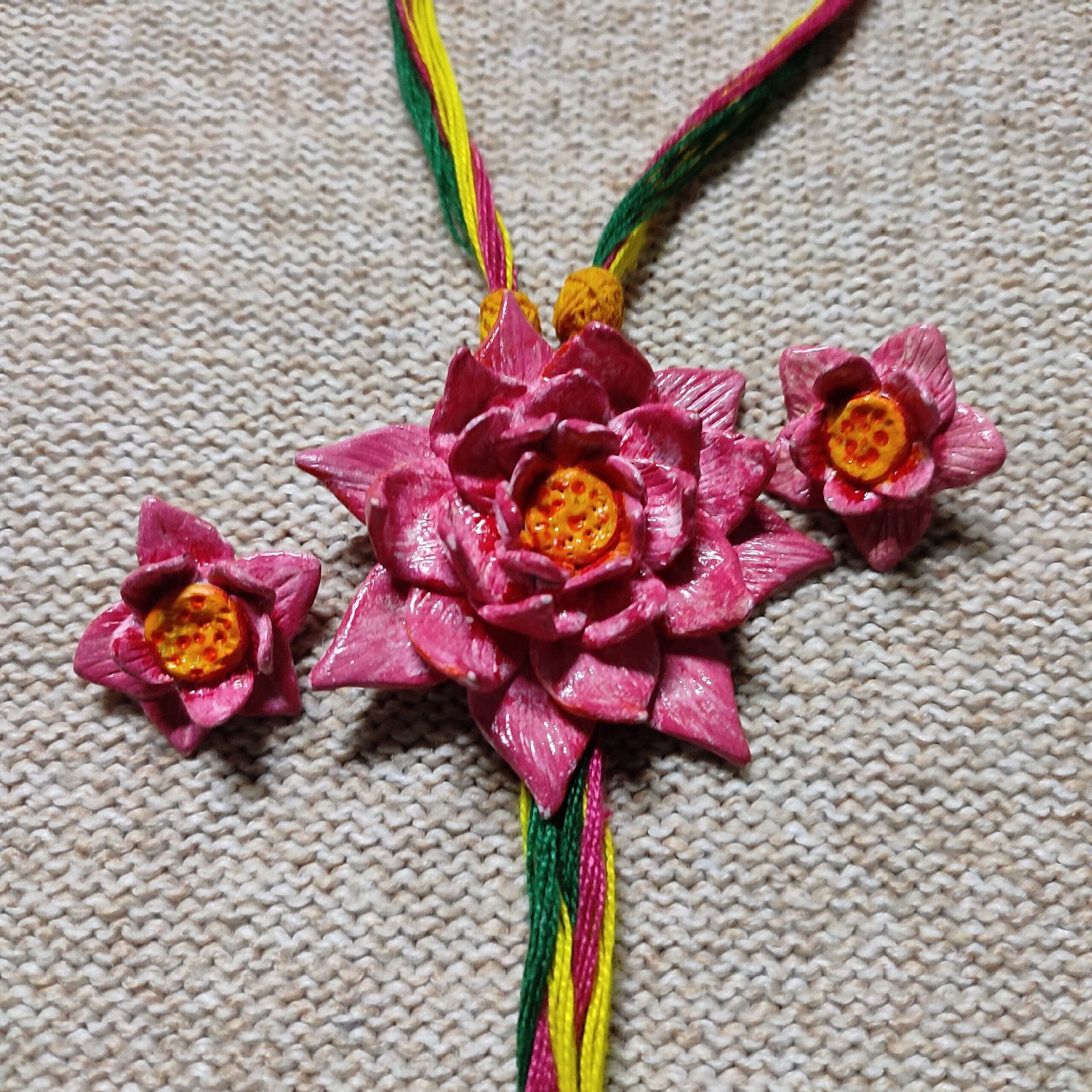 Lotus necklace set containing 1 necklace and 2 ear rings