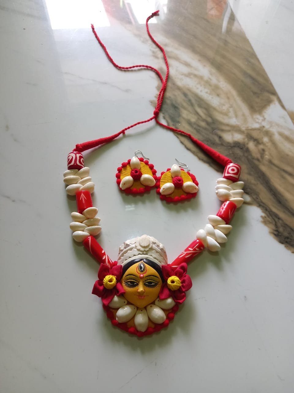 Celebrate the grace of Goddess Durga with our stunning Traditional Maa Durga Jewellery Set, featuring a beautifully crafted necklace and matching earrings. Inspired by sacred temple jewellery designs, this set showcases intricate detailing with traditional motifs like the trishul, lotus, and conch shell – symbols of divine feminine power.